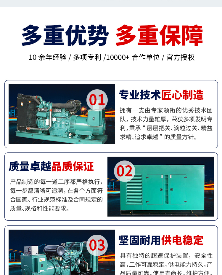 康邦可為不同行業提供30KW-3000KW不同規格、普通型、自動化、四保護、自動切換及三遙監控、低噪音及移動式、自動化并網系統等特殊電力需求的柴油發電機組。